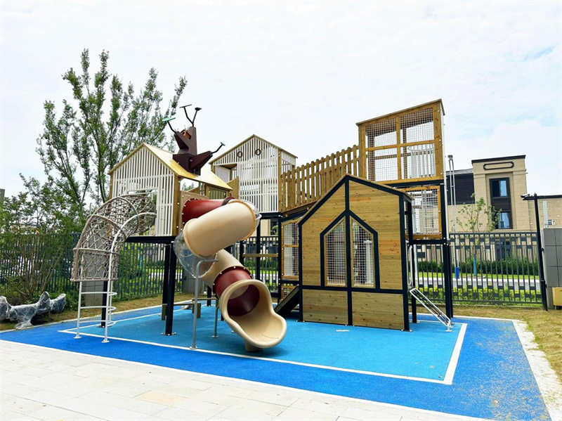 4、戶外木質(zhì)設(shè)備:采用防霉防腐工藝處理,適配戶外環(huán)境,包括木質(zhì)攀爬架、木質(zhì)游樂屋等,注重自然風格與安全性。